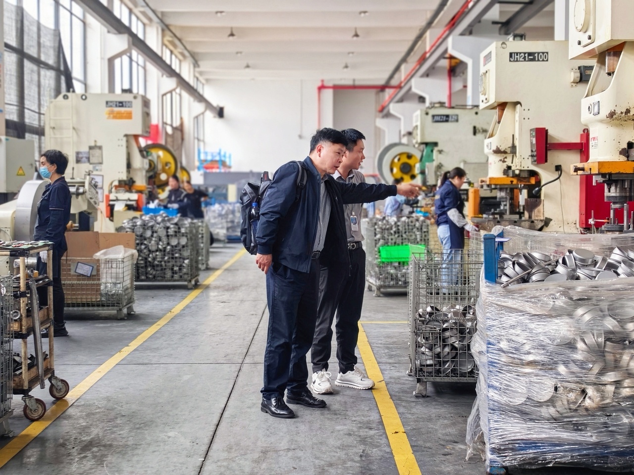 负责下料工序的女职工抛出了“天天见、天天烦”的老大难问题,“车间里材料库房、生产线、成品区就隔了一条窄过道,废料堆放不合理。切下来的铁屑、边角料、包装废料全挤在一个区域,没分类也没遮盖。有时候堆得高了还往过道滑。”刘得波回答道:“这问题正好对应6S里的‘整顿’‘清扫’。间隔问题,91成人亚洲一区关键是用黄色警示线明确分区,同时规定‘周转区’不允许长期堆货;废料问题,建议按铁屑、包装、危废三类设固定区域,每天下班前‘日清日结’。”女职工们连连点头:“这下知道怎么动手了。”