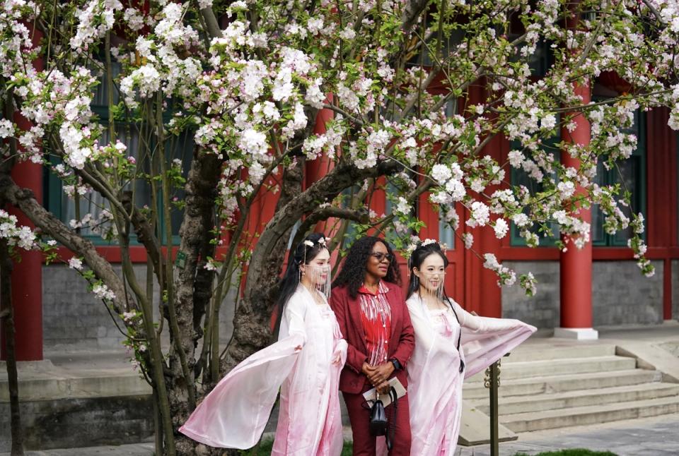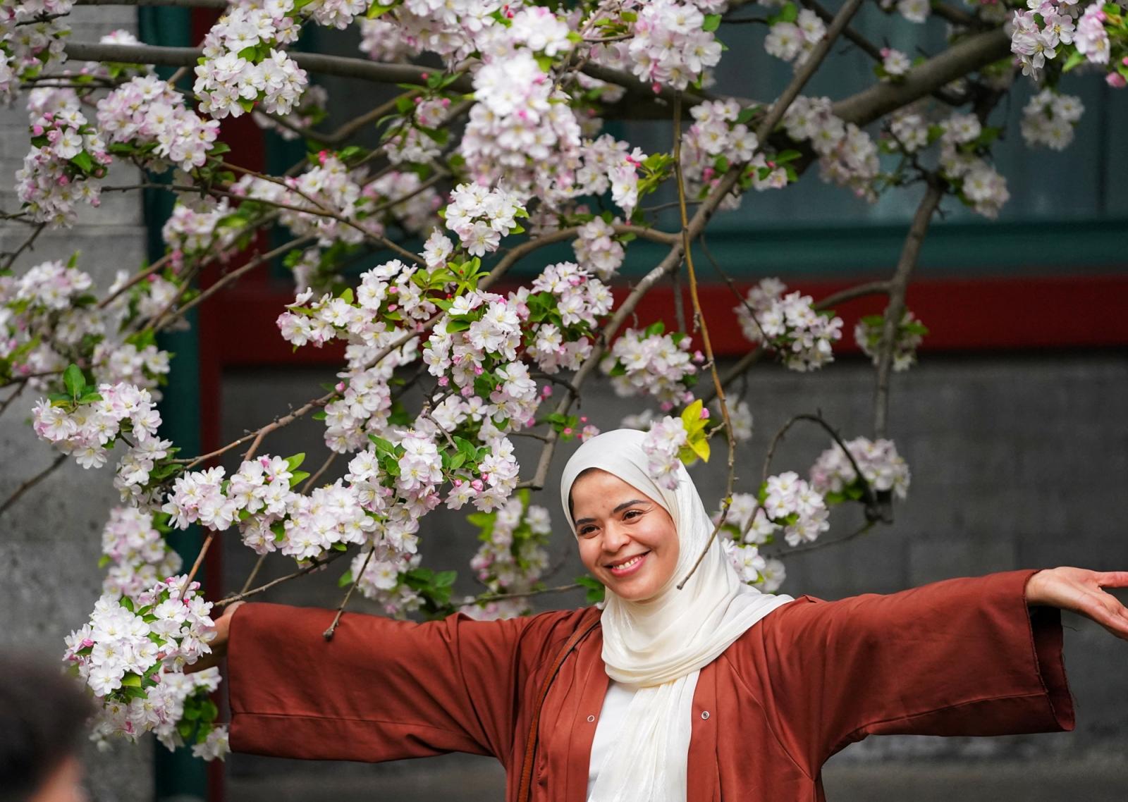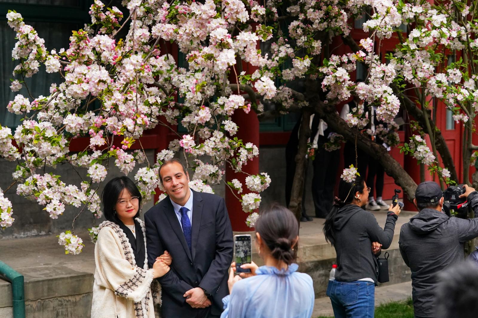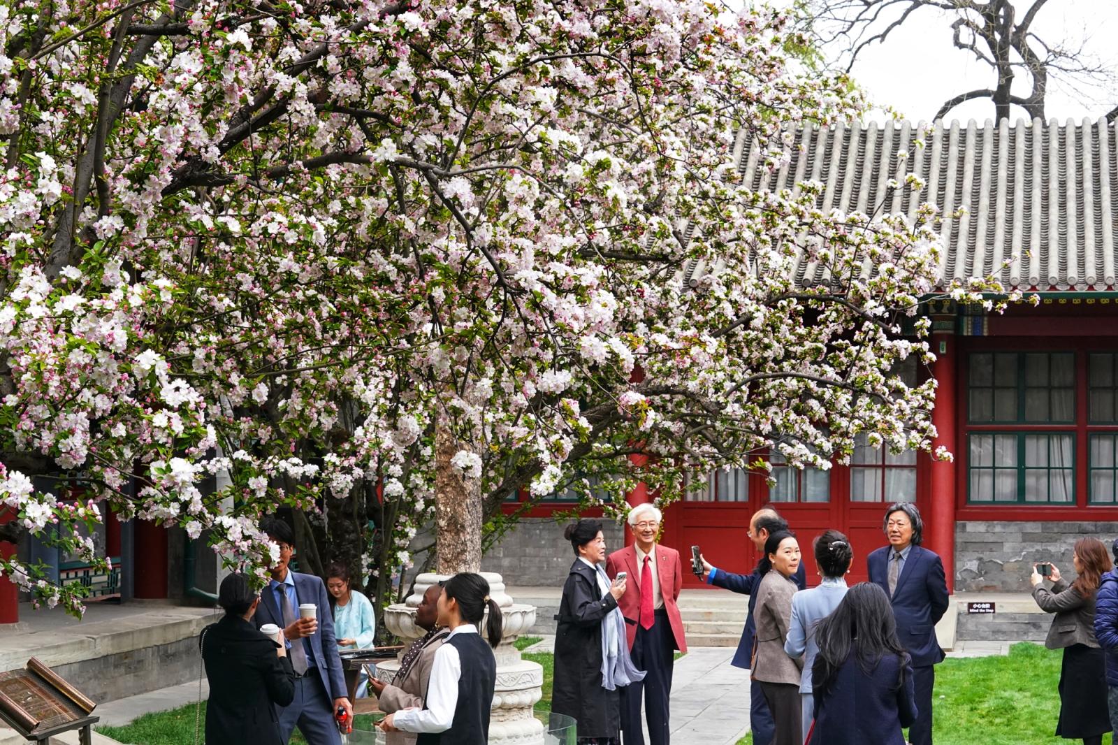 宋庆龄故居西府海棠盛放,中外游客共赴春日之约