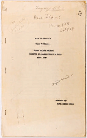 萨顿提交的关于日军反人类罪行的报告。